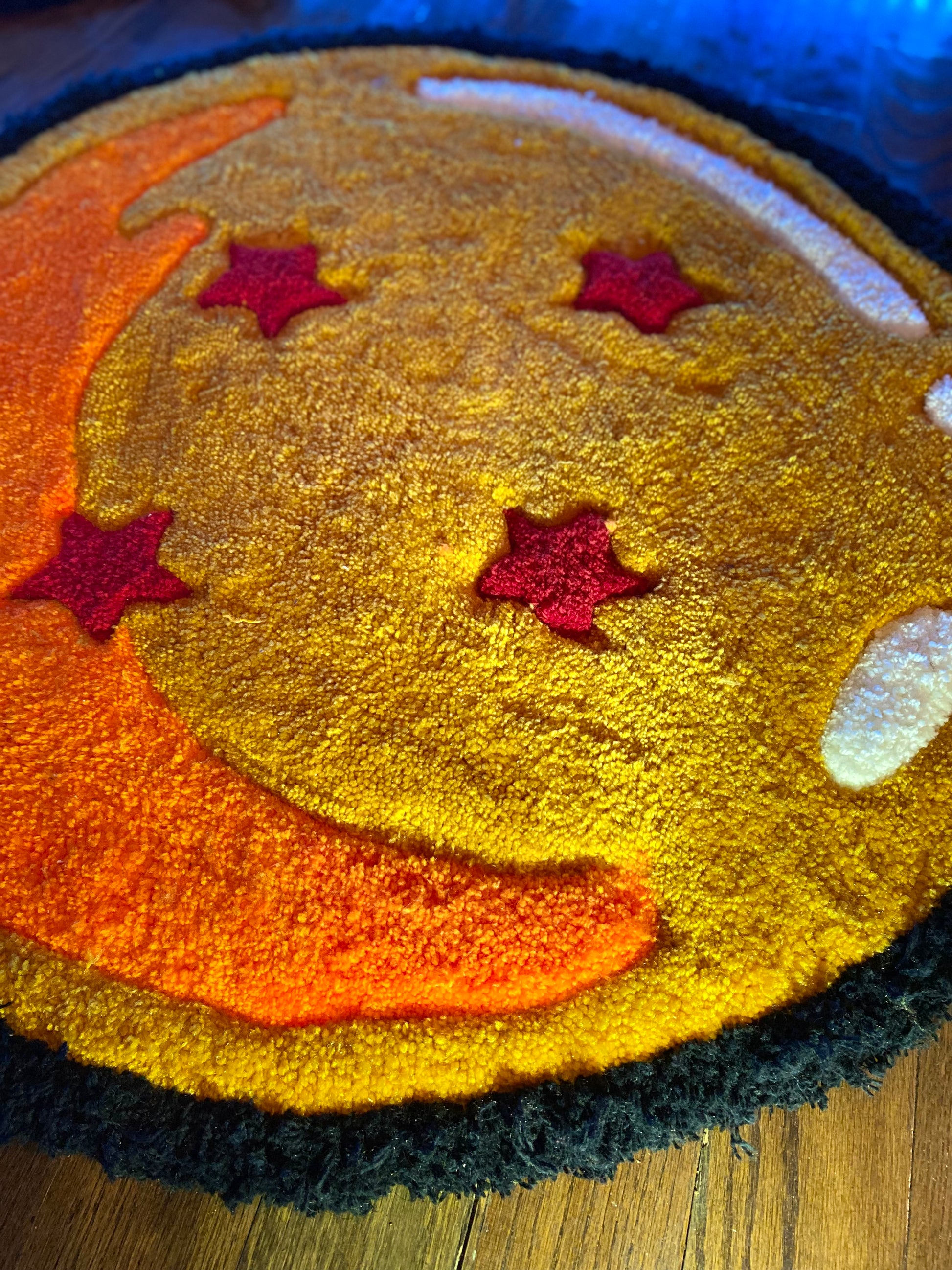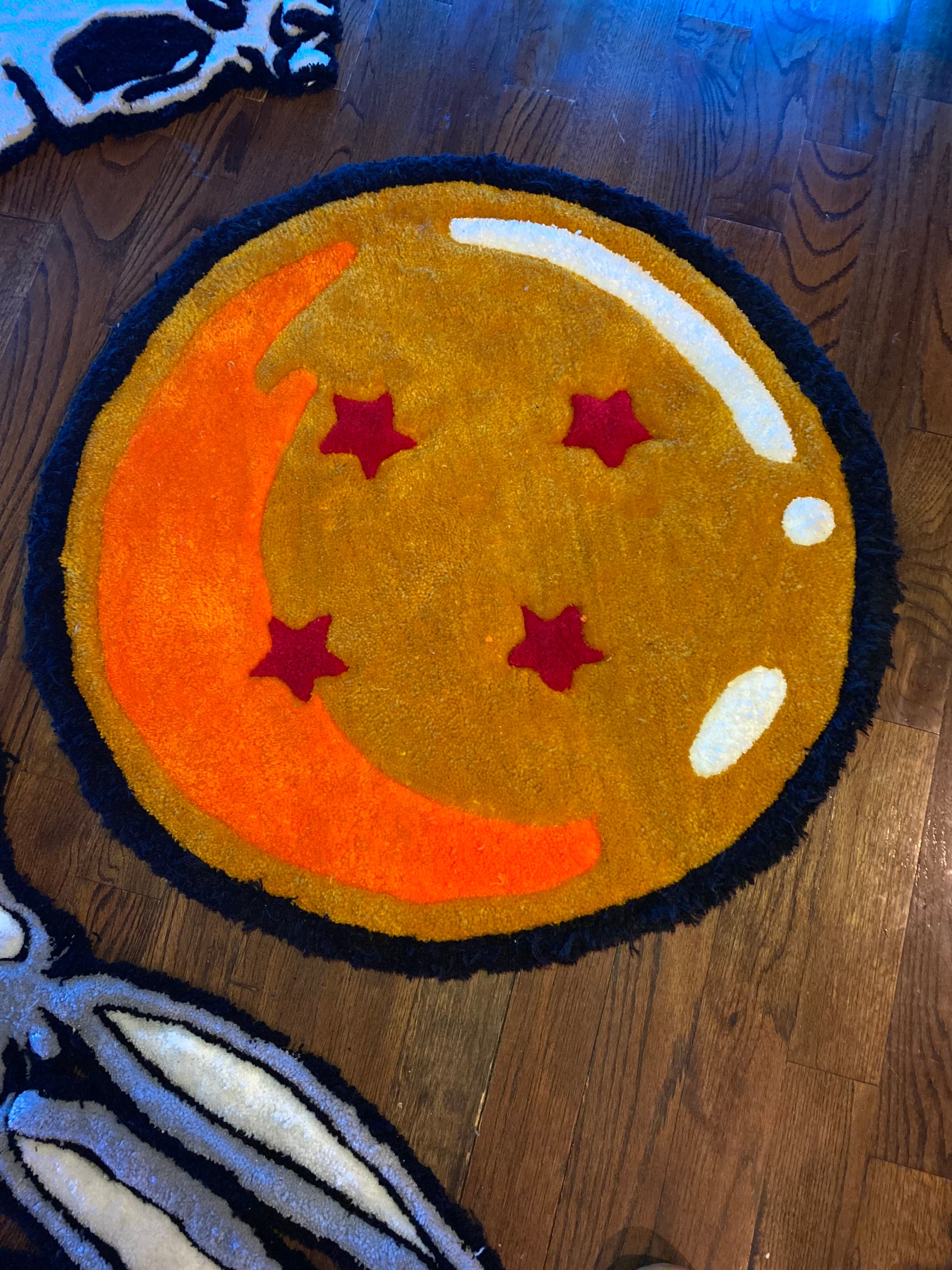 The ROCKSTARRUGGY™ “4-Star Dragon Ball Tribute” Tufted Rug is a handcrafted homage to one of the most iconic artifacts in anime history. Featuring a rich golden orb, four red stars, and glowing orange accents, this piece radiates nostalgia and power. Designed for true fans, collectors, and anyone tapped into legendary energy.