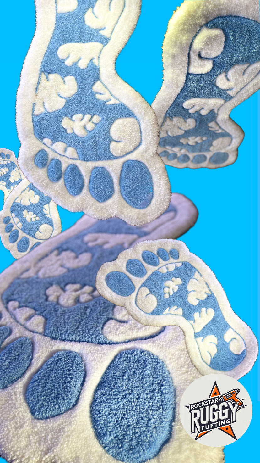Feel like you’re floating with every step. The Walking on a Cloud rug by ROCKSTARRUGGY™ is a dreamy, handcrafted tufted piece that blends playful footprint art with soft sky-blue and cloud-white textures. Designed for those who love bold comfort and statement decor, this rug adds a surreal and cozy touch to any room.